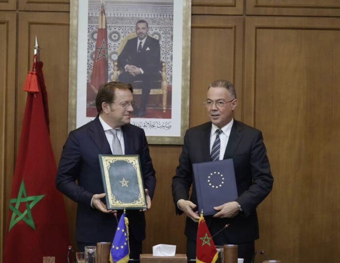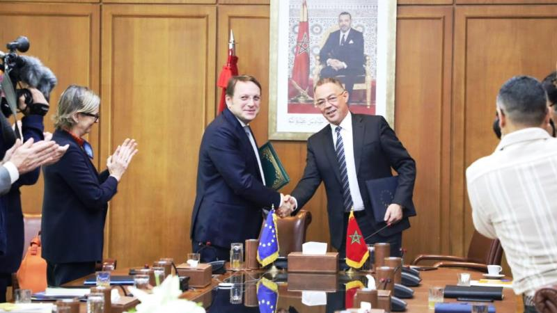 وقد وقع الاتفاقية فوزي لقجع، الوزير المنتدب المكلف بالميزانية، وأوليفر فارهيلي، المفوض الأوروبي المكلف بالجوار والتوسع.