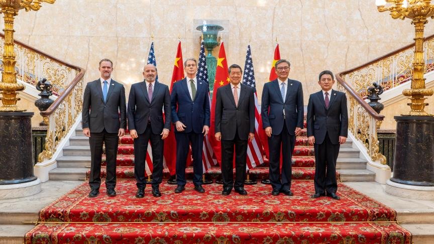 ضم الوفد الأمريكي وزير الخزانة سكوت بيسنت ووزير التجارة هاوارد لوتنيك، والتقوا في قصر لانكستر بنائب رئيس الوزراء الصيني خه ليفنغ، وعدد من كبار المسؤولين التجاريين. وقد أكد الطرفان رغبتهما في تهدئة التوترات التجارية المتصاعدة.