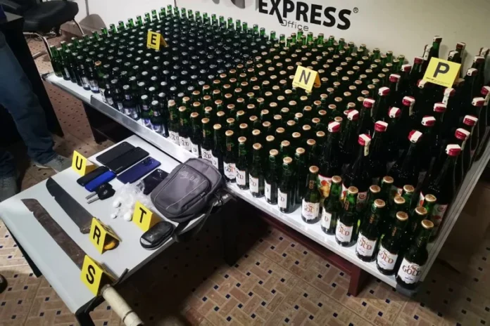 وأضاف المصدر ذاته أنه جرى التنسيق مع عناصر الدرك الملكي بعين دريج، حيث نُصب كمين محكم أسفر عن توقيف المزود الرئيسي وحجز سيارة نفعية وعدد من الأسلحة البيضاء (سيوف) وهواتف نقالة، بالإضافة إلى حوالي 10 غرامات من مخدر الكوكايين وأكثر من 400 قنينة من الخمور والجعة من مختلف الأنواع.