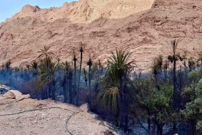 تسبب حريق اندلع في واحة نخيل بجماعة تودغى العليا (إقليم تنغير)، الخميس الماضي، في خسائر فادحة في أشجار النخيل مختلفة الأصناف، وتمكنت جهود السلطة المحلية والوقاية المدنية والدرك الملكي والقوات المساعدة والساكنة المحلية من إخماده دون تسجيل خسائر بشرية.