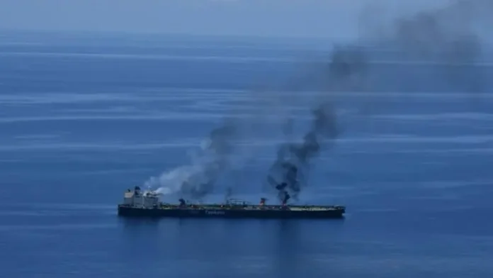 بثت جماعة الحوثيين مشاهد لاقتحام وإحراق سفينة يونانية في البحر الأحمر، بزعم أنها انتهكت قرار حظر الدخول إلى موانئ فلسطين المحتلة. أظهرت المشاهد عناصر مسلحة من الحوثيين يضرمون النيران في السفينة، التي كانت محملة بالنفط. السفينة « سونيون » تعرضت للهجوم في 23 أغسطس الجاري، واستمرت النيران في الاشتعال بعد الهجوم. الحوثيون أعلنوا أن الهجوم جزء من حملتهم ضد السفن المرتبطة بإسرائيل لدعم غزة، التي تشهد تصعيداً إسرائيلياً منذ أكتوبر الماضي.