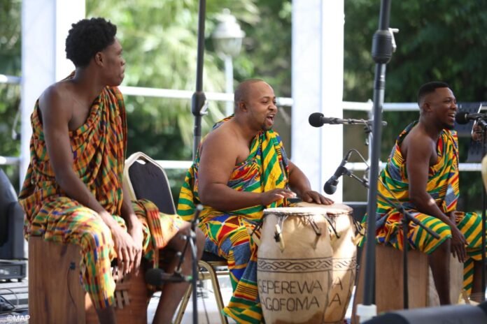 وقد قاد العرض الموسيقي الفنان الغاني البارز جون كوامي أوسي كورانكي، أحد أبرز أعلام آلة « السبروى »، وهي قيثارة تقليدية تعود جذورها إلى شمال الساحل الإفريقي، وتُعد من الرموز الموسيقية لدى شعوب الأكان. ورافقه كل من كريستوفر أموتورنيور على آلة « برمبنسوى » (وهي آلة موسيقية تعتمد على الصفائح المعدنية)، والأمير تشارلز إغان على الإيقاعات، في عرض موسيقي جمع بين عمق التراث وقوة الروح وحداثة الأداء.