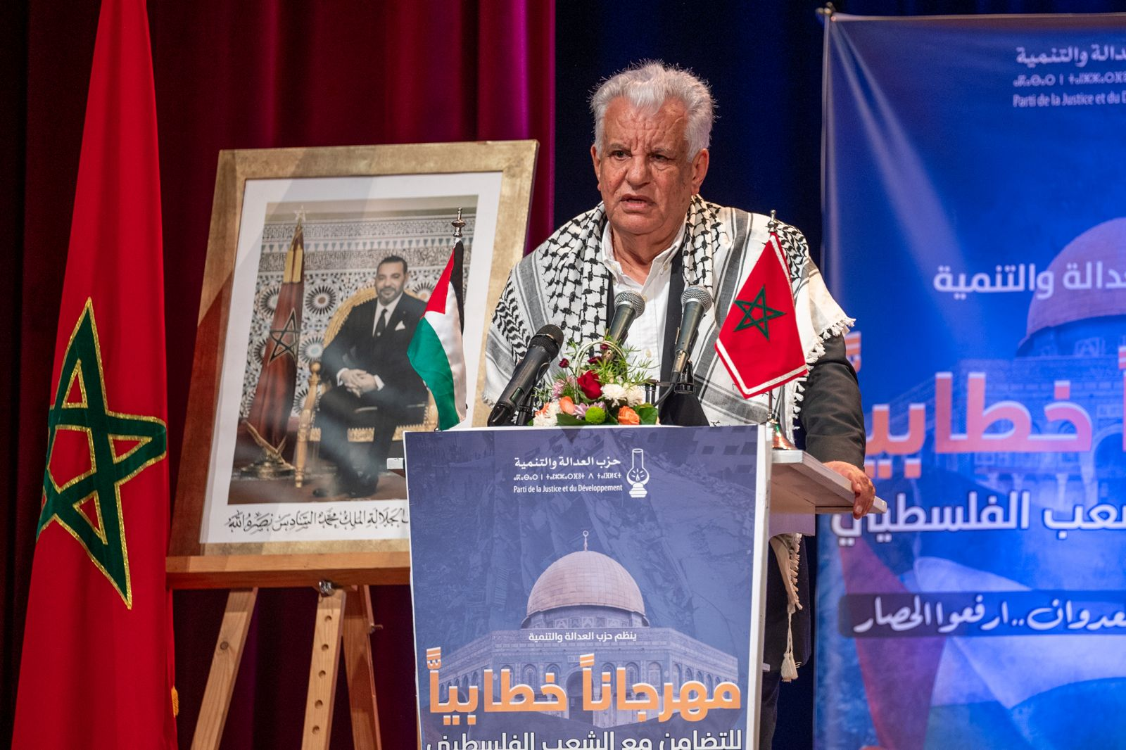أكد السفير جمال الشوبكي، سفير دولة فلسطين في الرباط، أن الاحتلال الإسرائيلي سيزول رغم حجم الدماء وفظاعة العدوان على غزة وفلسطين، مؤكدًا أن فلسطين ستكون مقبرة للغزاة، رغم تاريخها الطويل من التحمل للغزوات. وجاءت تصريحاته خلال « مهرجان خطابي » نظمه حزب العدالة والتنمية في الرباط يوم الأحد 19 نونبر 2023، لدعم غزة وفلسطين.