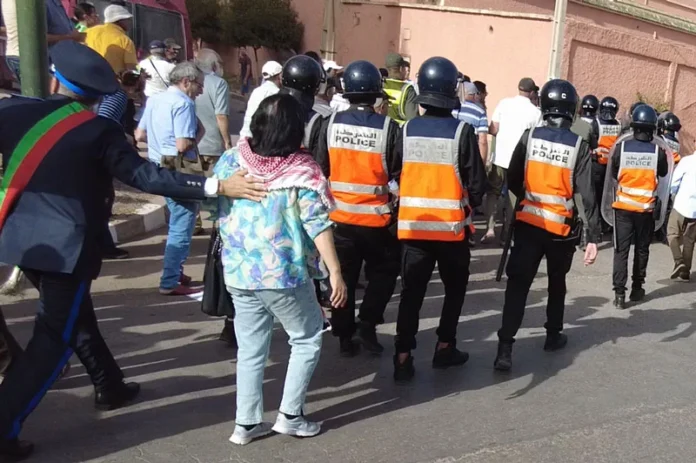 تدخلت القوة العمومية، مساء أمس الأحد، لتفريق وقفة احتجاجية دعا إلى تنظيمها المكتب المركزي للجمعية المغربية لحقوق الإنسان أمام مركز الدرك في سبت أولاد النمة- سرية الفقيه بن صالح.