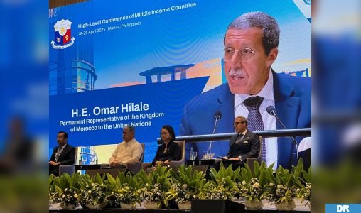 قدّم السفير الممثل الدائم للمغرب لدى الأمم المتحدة، عمر هلال، أبرز المبادرات الاستراتيجية التي أطلقها صاحب الجلالة الملك محمد السادس لفائدة الدول النامية، وذلك خلال المؤتمر الوزاري للدول ذات الدخل المتوسط، الذي انعقد في مانيلا يومي 28 و29 أبريل.