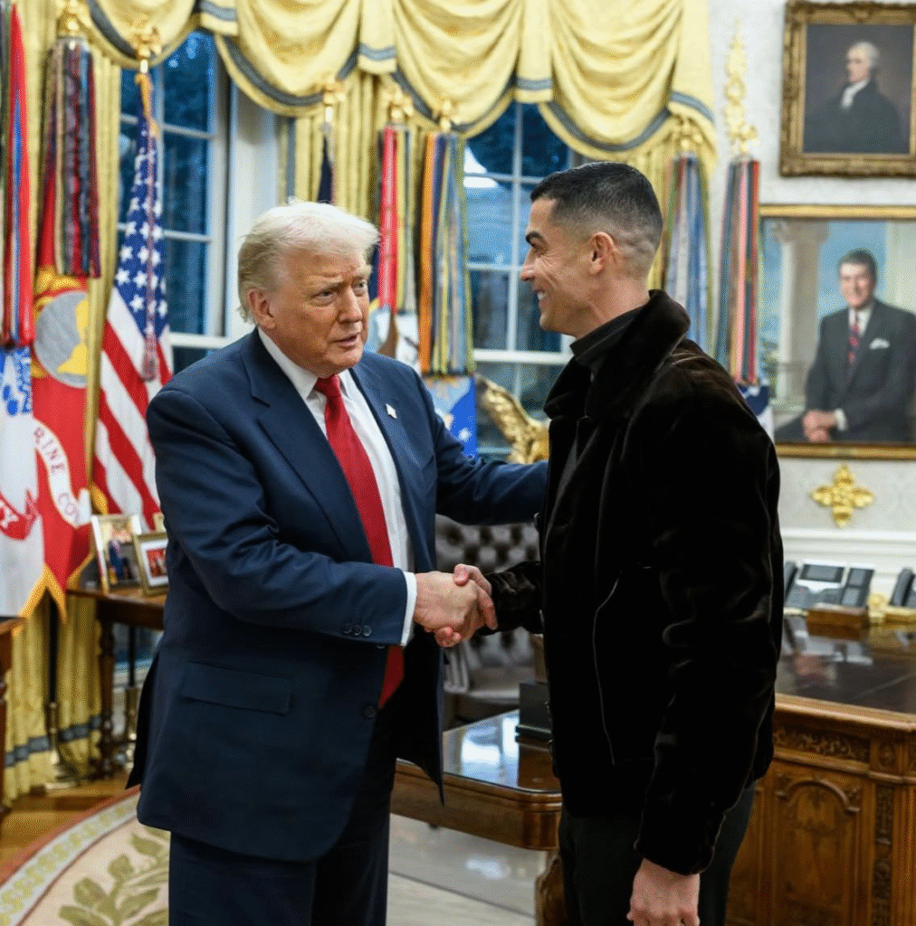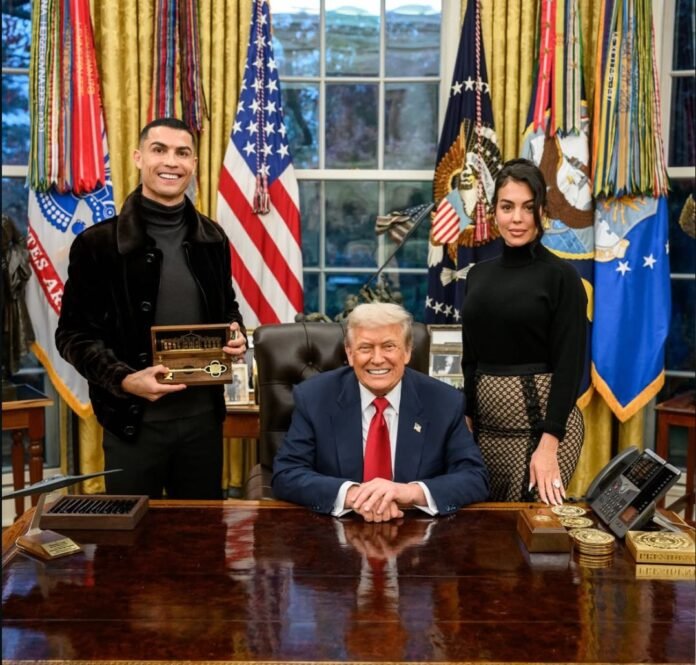 أثارت الصور المتداولة للقاء كريستيانو رونالدو ودونالد ترامب في البيت الأبيض جدلاً واسعاً. اللاعب البرتغالي، الذي كان ضمن وفد سعودي برئاسة الأمير محمد بن سلمان، التقط صوراً مع الرئيس الأمريكي وشارك الحدث على حساباته في وسائل التواصل الاجتماعي.
