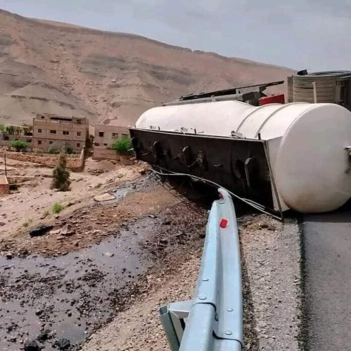 انقلاب شاحنة محملة بالبنزين امس الثلاثاء بين دوار تورجدال و جماعة أمرزكان على مستوى الطريق الوطنية رقم 9