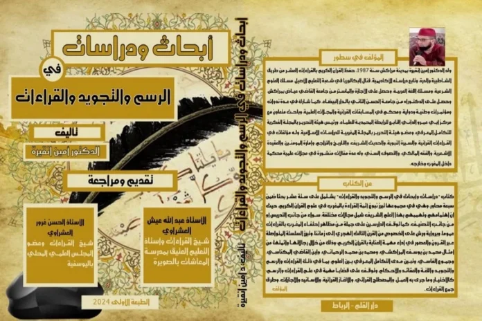 صدر مؤخرا للباحث أمين انقيرة، بحث علمي جديد بعنوان: “أبحاث ودراسات في الرسم والتجويد والقراءات”، من تقديم ومراجعة الأستاذ عبد الله عيش العشراوي، شيخ القراءات أستاذ التعليم العتيق بمدرسة المعاشات بالصويرة، والأستاذ الحسن غرور العشراوي، شيخ القراءات عضو المجلس العلمي المحلي باليوسفية.