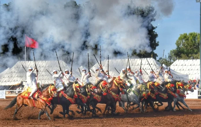 وتُعد التبوريدة، المعروفة أيضاً بـ »الفانتازيا »، فناً فروسياً مغربياً أصيلاً، تُؤدى من قبل سرايا من الفرسان (السربات)، يقودهم مقدم، وينفذون طلقات نارية متزامنة ببنادق تقليدية مملوءة بالبارود، في عروض متناغمة تستعرض المهارة والانضباط. وهي أكثر من مجرد عرض فرجوي، إذ تمثل رمزاً حياً لتاريخ المغرب وفخره الحضاري.