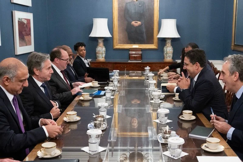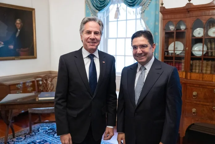اجتمع أنتوني بلينكن، وزير الخارجية الأمريكية، مع نظيره المغربي ناصر بوريطة، وزير الشؤون الخارجية والتعاون الإفريقي والمغاربة المقيمين بالخارج، حيث تم مناقشة الجهود الرامية لتعزيز السلام على الصعيدين الإقليمي والدولي، بالإضافة إلى تعزيز الشراكة الأمريكية-المغربية.