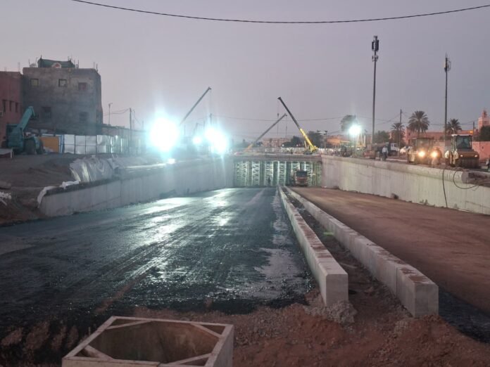 تشهد أشغال إنجاز النفقين التحت أرضيين عند تقاطع الطريقين الوطنيين رقم 7 و8، شمال غرب مدينة مراكش، تقدّمًا مهمًا في إطار مشروع طرقي هيكلي يهدف إلى تحسين انسيابية حركة السير، وتعزيز السلامة الطرقية، وتسهيل الولوج إلى المداخل الرئيسية للمدينة، وذلك وفق الجدول الزمني والتقني المحدد.