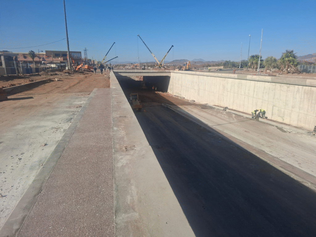 يشهد النفق الثاني، المتواجد عند تقاطع طريق الصويرة والطريق المؤدية إلى حي المحاميد، تقدّمًا واضحًا أيضًا: