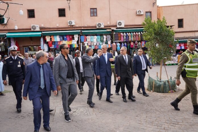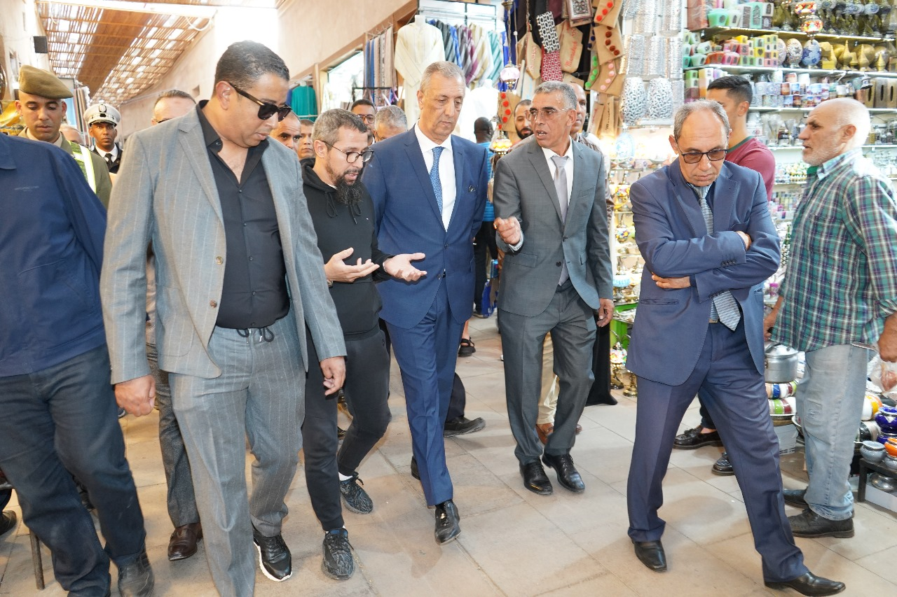 بدأت الجولة بزيارة ساحة جامع الفنا وباب فتوح، حيث تم فحص تدخلات الإصلاح التي يقوم بها بعض مستغلي المحلات، مع التأكيد على أهمية الحفاظ على الخصوصيات التاريخية والمعمارية للمدينة العتيقة. ثم تمت زيارة فندق بن شبابة والتأكيد على ضرورة التسريع في عمليات الترميم. ومن ثم تمت زيارة ممر دار السي سعيد وساحة بن يوسف لتفقد أعمال التثبيت الحالية للبنايات ونماذج تدخلات إزالة آثار الزلزال. كما تم التأكيد على ضرورة معالجة هذه المخلفات وآثارها بالطريقة المتفق عليها في المدينة العتيقة.