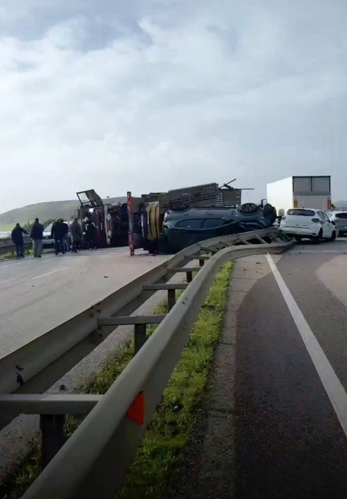 شهد الطريق الرابط بين العرائش وطنجة حادث سير خطير، إثر انقلاب شاحنة بسبب هبوب رياح قوية.