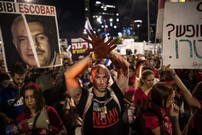 وفي غضون ذلك أغلق متظاهرون إسرائيليون، الأحد، الطرق في تل أبيب لليوم الثاني على التوالي، مطالبين الحكومة بإبرام صفقة لتبادل الرهائن مع حركة المقاومة الإسلامية الفلسطينية مع دخول الحرب في غزة شهرها العاشر.