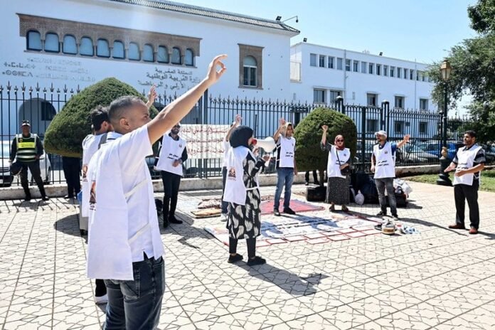 نظمت تنسيقية الكرامة لخريجي الجامعات، يوم الإثنين 15 سبتمبر 2025، اعتصامًا أمام وزارة التربية الوطنية والتعليم الأولي والرياضة، للمطالبة بإدماج الشباب الحاصلين على الشهادات في الوظيفة العمومية. تأتي هذه الخطوة ضمن سلسلة تحركات احتجاجية نظمت خلال الأشهر الماضية للتنديد بتوقف مسارهم المهني والمطالبة بحقوقهم.
