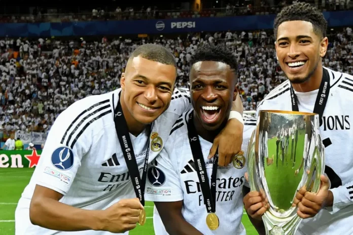 ريال مدريد يشهد حقبة جديدة مع الثلاثي الهجومي « بي إم في » (BMV) المكون من كيليان مبابي، جود بيلينغهام، وفينيسيوس جونيور. في مباراة كأس السوبر الأوروبي، التي أقيمت ضد أتلانتا الإيطالي على ملعب وارسو في بولندا، قدم هذا الثلاثي أداءً رائعًا، حيث سجل مبابي هدفًا في المباراة، ما رفع رصيده إلى 9 أهداف في 12 مباراة نهائية.