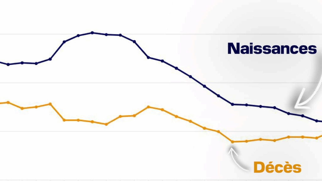 الرصيد الطبيعي للسكان الفرنسيين، أي الفرق بين عدد المواليد والوفيات، أصبح الآن سلبياً بمقدار -6,000 شخص. ويشير جيليس بيسون، أخصائي علم السكان، إلى أن هذه الظاهرة أصبحت شائعة في العديد من الدول الأوروبية، حيث استقرت أو تراجعت أعداد السكان.