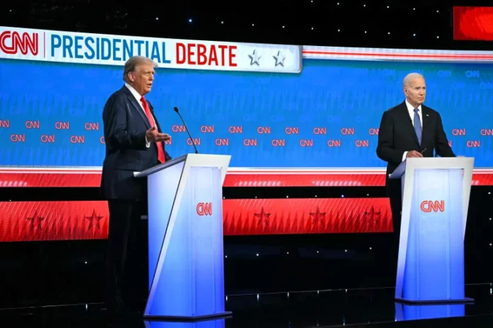 في مناظرة تاريخية، تبادل الرئيس الأميركي جو بايدن وسلفه دونالد ترامب الاتهامات والشتائم في أول مناظرة بينهما التي قد تُشكّل منعطفا في انتخابات 2024 الرئاسية. وشملت الاتهامات المتبادلة قضايا مثل الإجهاض، وطريقة إدارة الاقتصاد، والحرب في أوكرانيا وغزة. جرت المناظرة في مدينة أتلانتا بولاية جورجيا، وهي إحدى الولايات التي يُرجّح أن يكون لها تأثير في الانتخابات.