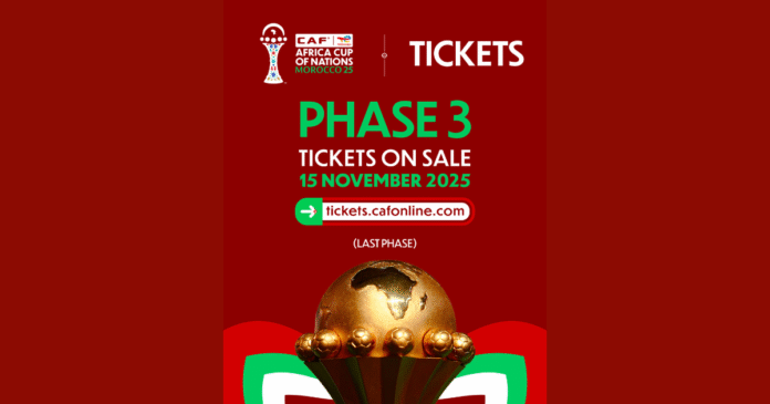 تفتح الكونفدرالية الإفريقية لكرة القدم (الكاف) يوم السبت 15 نوفمبر المرحلة الثالثة لبيع تذاكر بطولة كأس إفريقيا 2025، التي ستقام في المغرب.