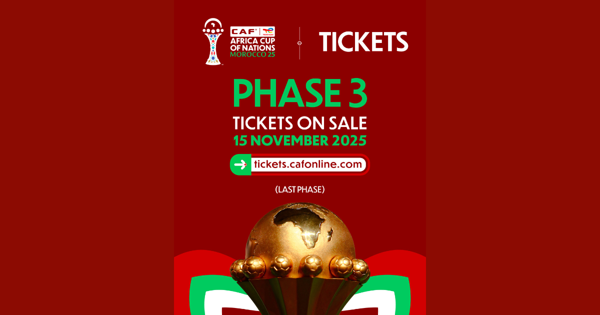 تفتح الكونفدرالية الإفريقية لكرة القدم (الكاف) يوم السبت 15 نوفمبر المرحلة الثالثة لبيع تذاكر بطولة كأس إفريقيا 2025، التي ستقام في المغرب.