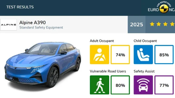 المشكلة تبدو أكثر وضوحاً بالنسبة لـ Alpine A390، التي يُقارب سعرها 67,500 يورو، إذ سجلت 74٪ في حماية البالغين.