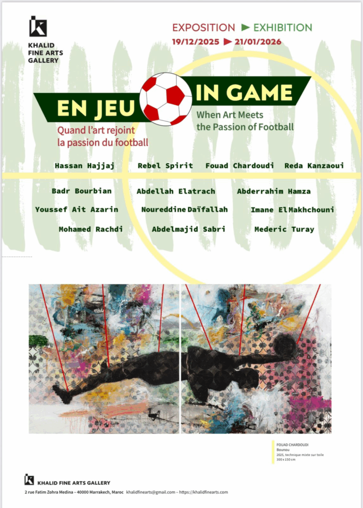 تستضيف معرض خالد للفن المعاصر في مراكش، من 19 ديسمبر 2025 إلى 21 يناير 2026، المعرض الجماعي بعنوان « في اللعب »، بالتزامن مع انطلاق كأس الأمم الإفريقية 2025 بالمغرب. وسيقام حفل الافتتاح يوم الجمعة 19 ديسمبر ابتداءً من الساعة 18:30.