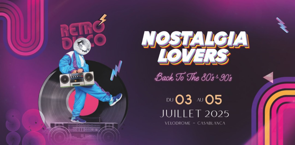 يعود مهرجان Nostalgia Lovers في نسخته الجديدة إلى مدينة الدار البيضاء ما بين 3 و5 يوليوز 2025، في فضاء « الفيلودروم ». ويعد هذا الحدث الفريد من نوعه جمهوره برحلة زمنية ساحرة إلى عقود الثمانينات والتسعينات وأوائل الألفية، من خلال الموسيقى والموضة وتجارب تفاعلية متنوعة.
