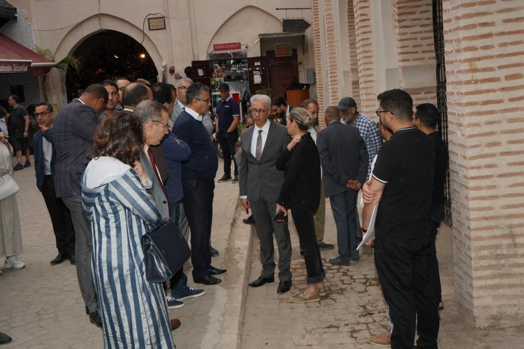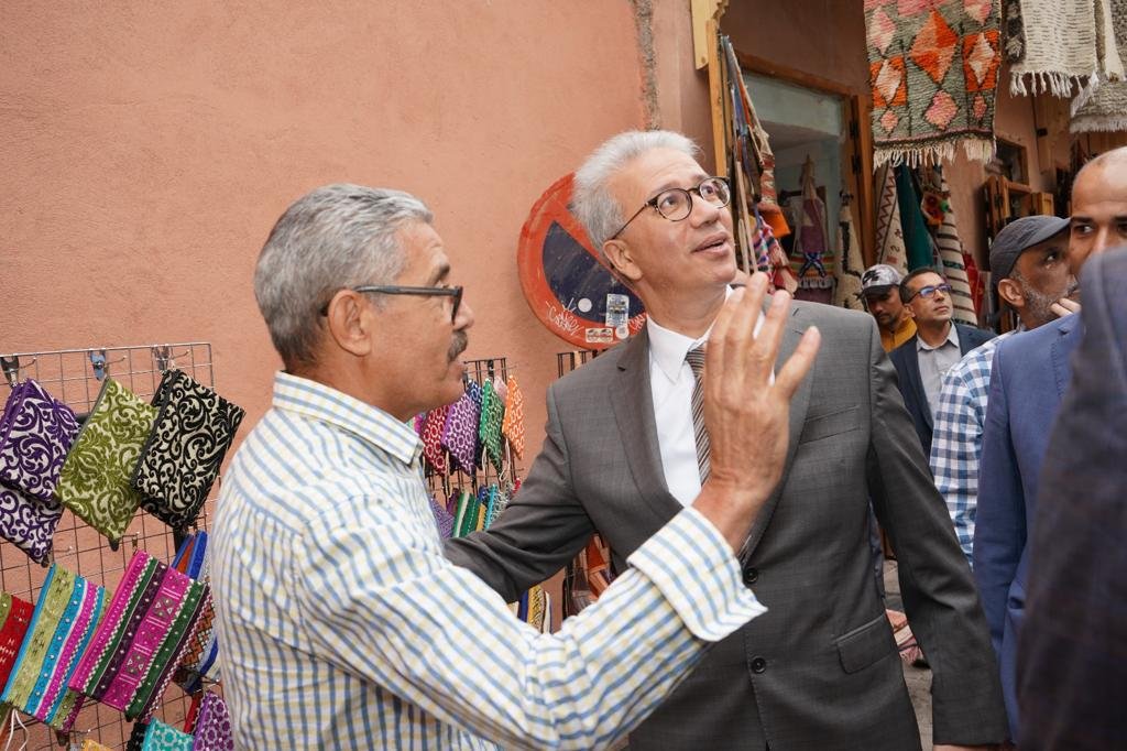 وشكلت الجولة فرصة للتواصل مع التجار والحرفيين المعنيين بهذه المشاريع والإنصات لاقتراحاتهم. حيث أهاب السيد قسي لحلو بضرورة احترام الجودة والآجال، مع الاخذ بعين الاعتبار أوقات اشتغال الحرفيين. وكان والي الجهة مرفوقا بنائب رئيسة مجلس جماعة مراكش والكاتب العام للعمالة، ومديري و ممثلي كل من المديرية الجهوية للإسكان وسياسة المدينة، المديرية الجهوية للثقافة والوكالة الحضرية، وشركة العمران، والوكالة المستقلة لتوزيع الماء والكهرباء ونظارة الاحباس إضافة إلى رؤساء الأقسام بالولاية، ورجال السلطة المعنيين