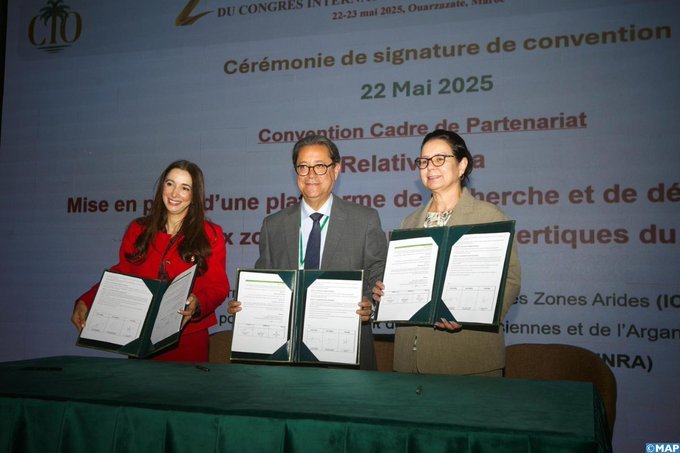 تم يوم الخميس 22 ماي 2025 بمدينة ورزازات توقيع اتفاقية إطار بين ثلاث مؤسسات رئيسية: المركز الدولي للبحوث الزراعية في المناطق الجافة (إيكاردا)، والوكالة الوطنية لتنمية مناطق الواحات وشجر الأركان (أندزوا)، والمعهد الوطني للبحث الزراعي (إنرا).