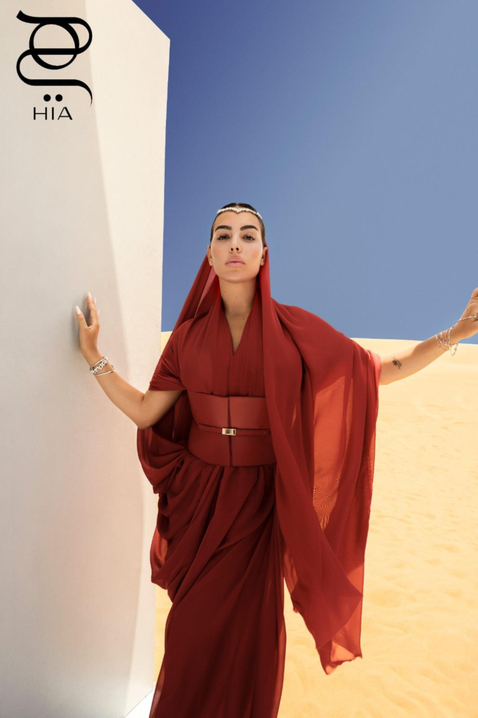 تعبر جورجينا عن حبها للعباءات وتأثرها بالثقافة السعودية في أسلوبها الشخصي. وعلى صورة الغلاف، تظهر رموز ثقافية من خلال تصويرها مع الخيل العربي في الصحراء، مما يرمز للقوة والجمال.