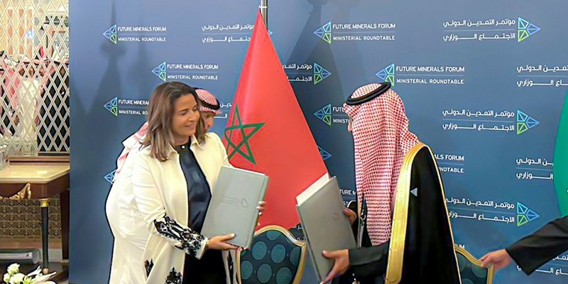 وقّع المغرب، يوم الثلاثاء 9 يناير 2024، مذكرة تفاهم مع المملكة العربية السعودية على هامش منتدى الأعمال حول المناجم الذي عقد في الرياض. وقد وُقعت هذه المذكرة من قبل وزيرة الانتقال الطاقوي والتنمية المستدامة ، ليلى بنعلي، برفقة بندر الخريف، وزير الصناعة والثروات المعدنية السعودي.