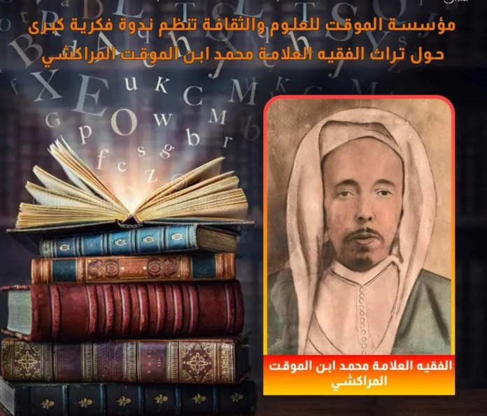 تقوم مؤسسة الموقت للعلوم والثقافة بتنظيم ندوة فكرية هامة تسلط الضوء على التراث العلمي للفقيه العلامة محمد ابن الموقت المراكشي، الذي أثرى الخزانة المغربية بمجموعة ثرية من المؤلفات في ميادين الفقه والتفسير، والتاريخ والأدب، والتصوف والتوقيت والفلك والفكر الاجتماعي، وميادين المعرفة الأخرى.