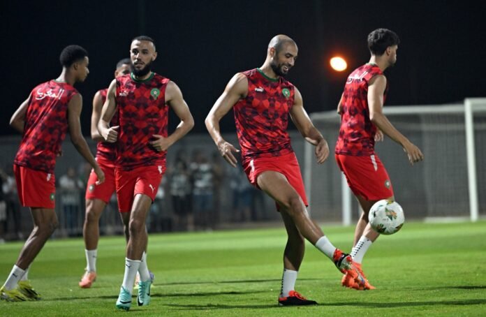 ركز السيد وليد الركراكي خلال الحصة التدريبية التي استمرت لنحو ساعة وخمس عشرة دقيقة على على وضع آخر اللمسات على المجموعة، استعدادًا للقاء الهام المقرر غدًا.