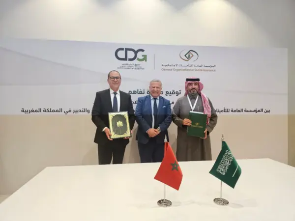 توقيع مذكرة تفاهم بين صندوق الإيداع والتدبير والمؤسسة العامة السعودية للتأمينات الاجتماعية.