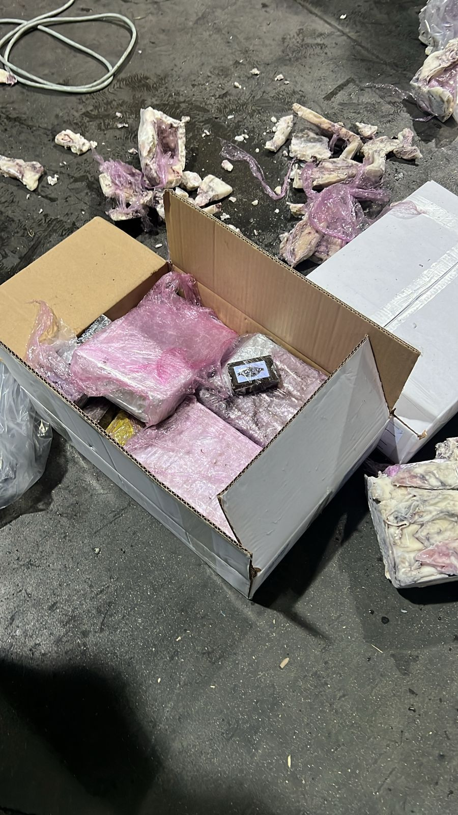 وكانت عمليات المراقبة الحدودية والتفتيش الدقيق قد أسفرت عن ضبط هذه الشحنة من المخدرات مخبأة بعناية داخل مقطورة شاحنة للنقل الدولي للبضائع، كانت تنقل شحنة من الأسماك وتستعد للمغادرة على متن رحلة بحرية متوجهة نحو أحد الموانئ الأوروبية، فضلا عن توقيف سائق الشاحنة، وهو من جنسية مغربية ويبلغ من العمر 32 سنة.