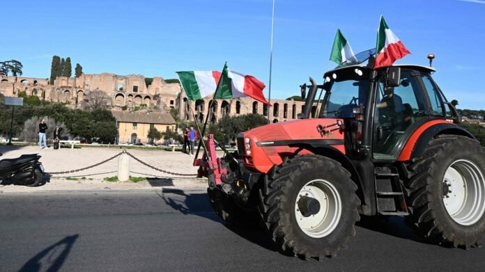 وقاد مزارعون إيطاليون جرارات في حلبة « سيركوس ماكسيموس » القديمة لعربات الخيل في العاصمة روما، كما تظاهرت مجموعة صغيرة قرب مكتب رئيسة الوزراء جورجيا ميلوني، بينما زار وفد في وقت سابق مكاتب الاتحاد الأوروبي لتسليم خطاب شكوى.