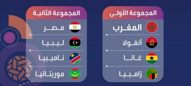 كما أدت القرعة إلى تكوين المجموعة الثانية التي تضم منتخبات مصر وليبيا وناميبيا وموريتانيا.