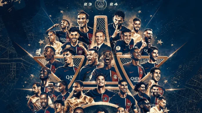 توج فريق باريس سان جيرمان بلقب الدوري الفرنسي لكرة القدم للمرة الثانية عشرة في تاريخه، معززًا بذلك سجله القياسي، وذلك بعد هزيمة منافسه موناكو، الذي يحتل المركز الثاني، بنتيجة 3-2 يوم الأحد.