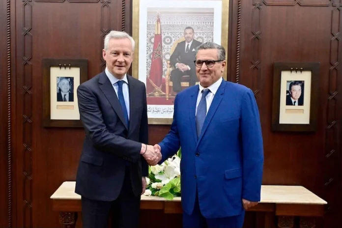 عقد رئيس الحكومة، عزيز أخنوش، يوم الخميس في الرباط، جلسة مباحثات مع وزير الاقتصاد والمالية والسيادة الصناعية والرقمية الفرنسي، برونو لومير، الذي يزور المملكة حاليًا.