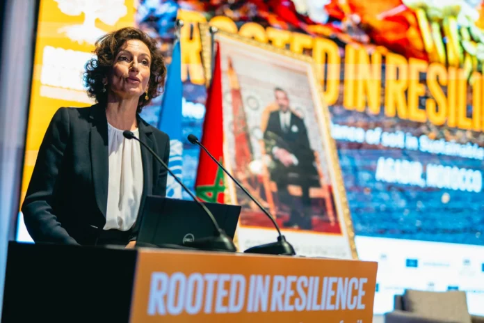 وقالت المديرة العامة لمنظمة اليونسكو، أودري أزولاي، خلال اختتام أشغال ندوة دولية تحت شعار « متجذرة في القدرة على الصمود: اكتشاف أهمية التربة في التنمية المستدامة »، نظمتها المنظمة والوكالة الوطنية لتنمية مناطق الواحات وشجر الأركان في أكادير، إن « التربة تضطلع بدور حاسم في الحفاظ على الحياة على الأرض. ومع ذلك، فهي لا تزال مهملة أو تتعرض لسوء الإدارة في كثير من الأحيان ».